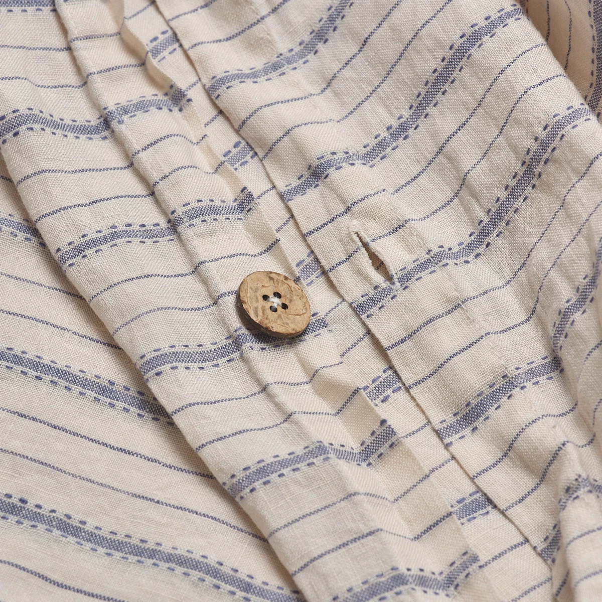 Dusk Blue Ticking Stripe Linen Duvet Cover