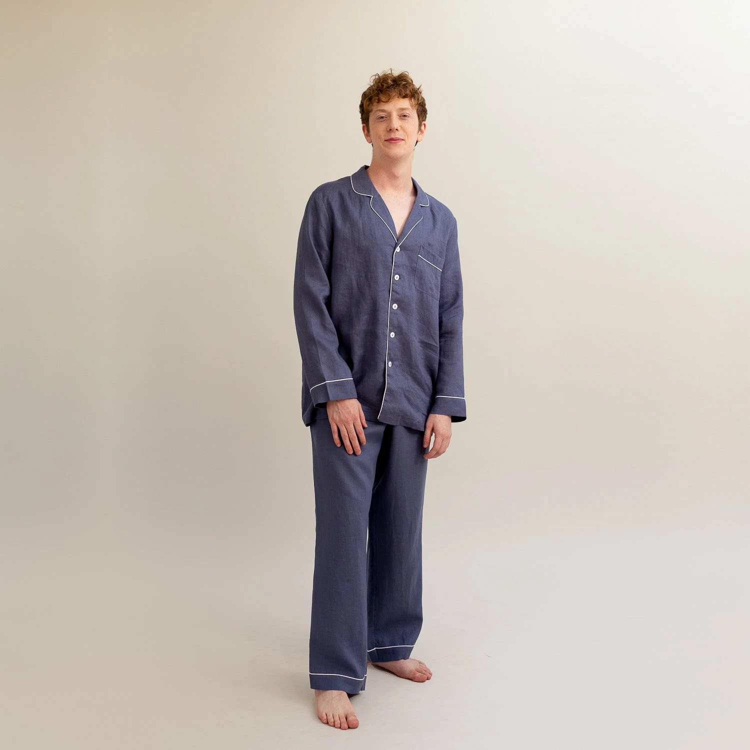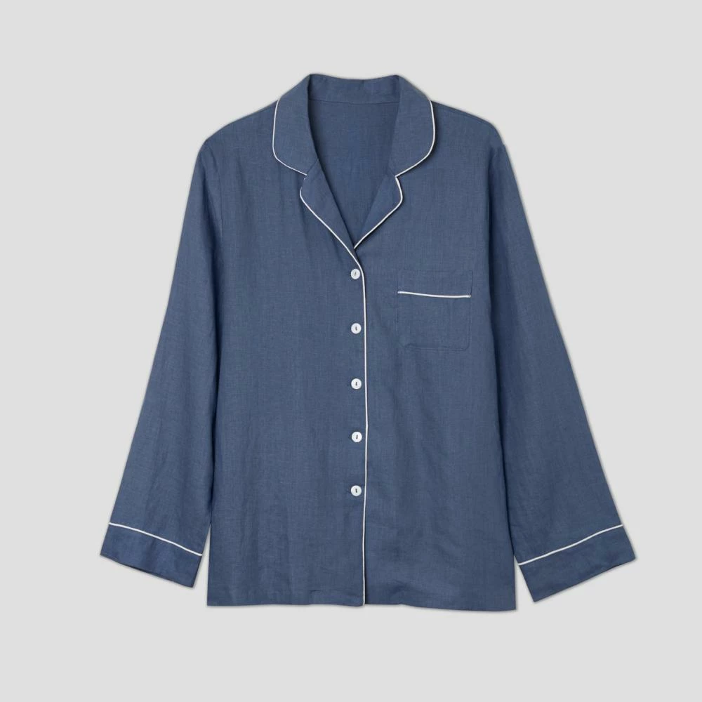 Made for those who like their sleepwear to be timeless yet comfortable, our Blueberry men’s pajama shirt is made from super soft 100% stonewashed linen. Linen keeps you cozy and warm in the winter and cool in the summer. Our linen pajama shirt can be paired with our pajama pants to complete the look.