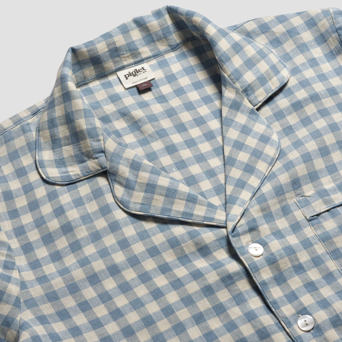 Made for those who like their sleepwear to be timeless yet comfortable, our Men’s Warm Blue Gingham pajama shirt is made from super soft 100% stonewashed linen. Linen keeps you cozy and warm in the winter and cool in the summer. Our linen pajama shirt can be paired with our pajama pants to complete the look.