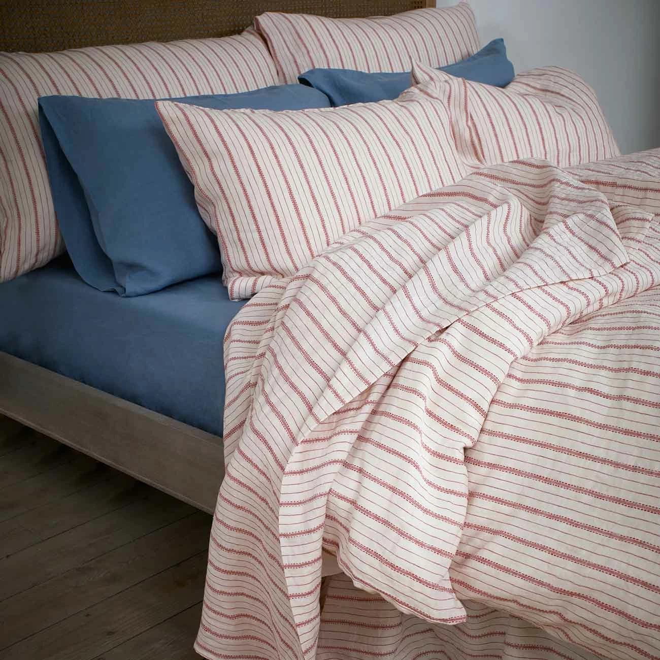 Mineral Red Ticking Stripe Linen Flat Sheet