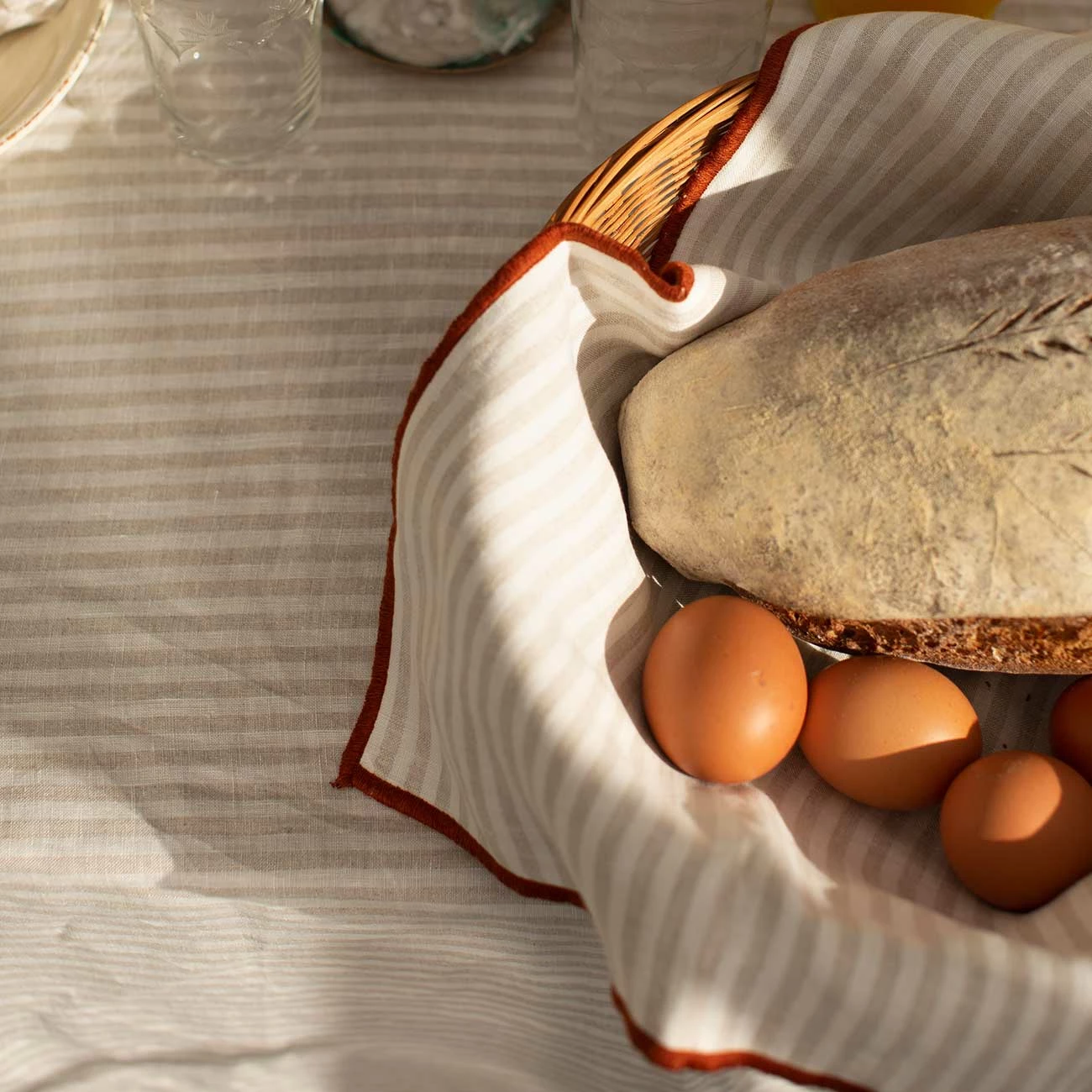 Made in Portugal, our Linen Napkin Set consists of a set of four napkins, made from 100% stonewashed European linen. Shown here in our classic Oatmeal Stripe linen, embellished with a contrasting overlocked border in a deep shade of Cinnamon Stick. Complement your napkin set with the rest of our linen tableware range, including placemats, runners and tablecloths.