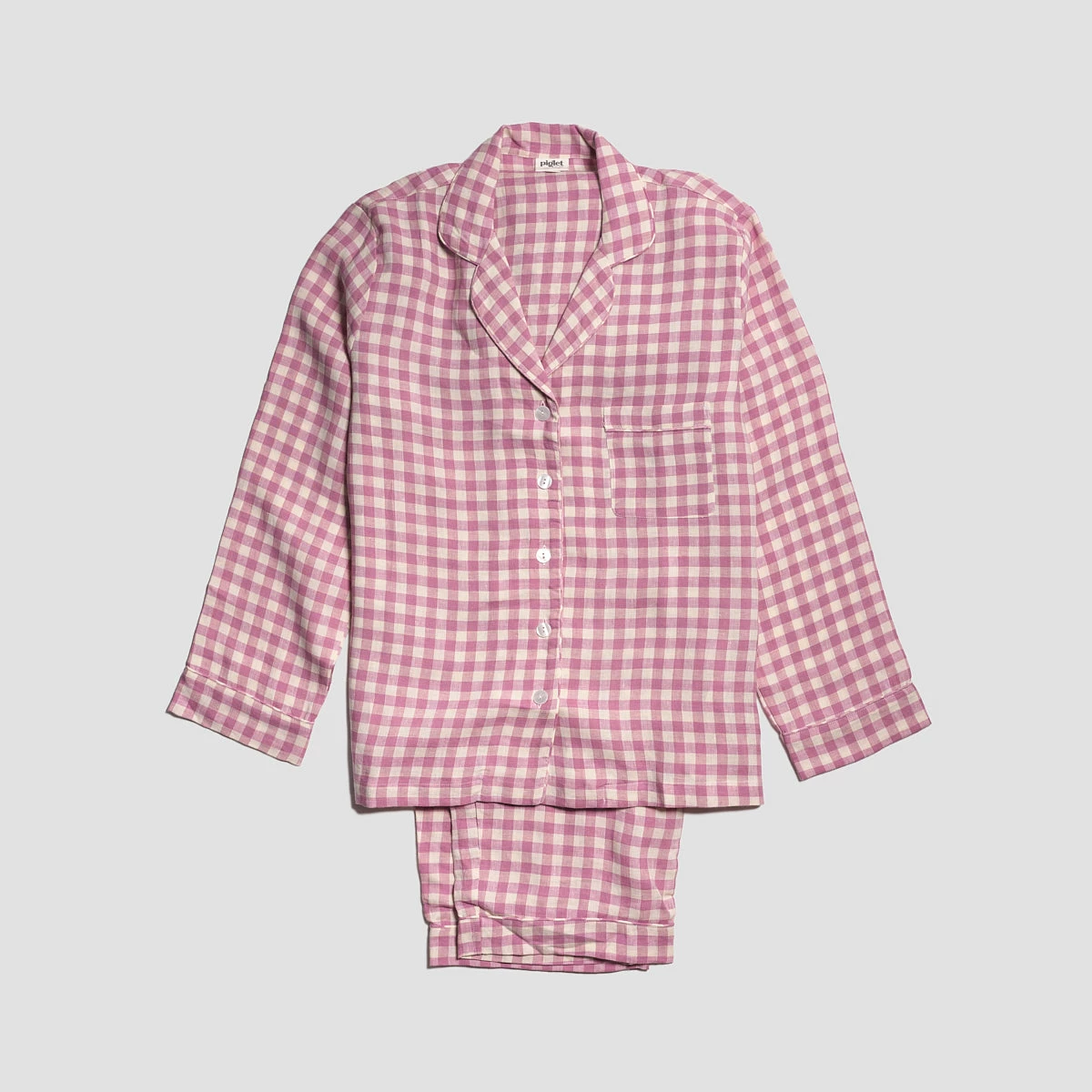 Made for cozy nights in and slow weekend mornings, our Orchid Gingham Pajama Set is made from super soft 100% stonewashed linen. Linen keeps you warm in the winter and cool in the summer. The shirt and pants shape is classic, and being made from lightweight natural linen makes this pajama set effortlessly comfortable.