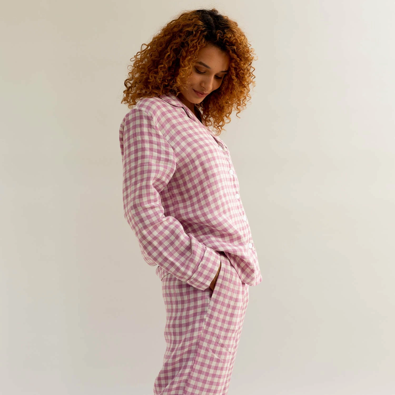 Made for cozy nights in and slow weekend mornings, our Orchid Gingham Pajama Set is made from super soft 100% stonewashed linen. Linen keeps you warm in the winter and cool in the summer. The shirt and pants shape is classic, and being made from lightweight natural linen makes this pajama set effortlessly comfortable.