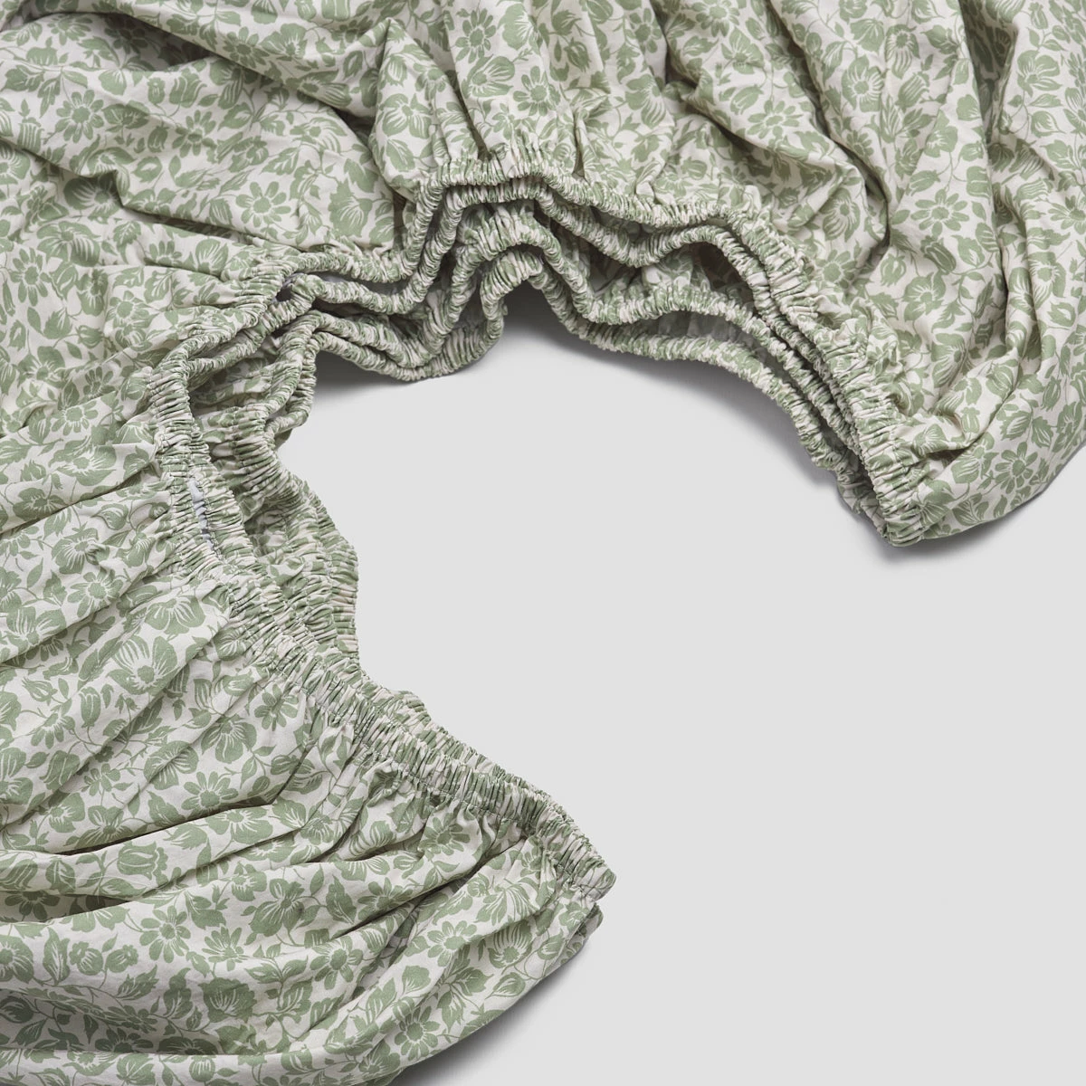Meet our first floral cotton bedding collection, inspired by the romantic charm of English country houses. Working with The Design Library – the worlds largest collection of documentary fabrics, paintings, prints and patterns – we sourced an archival floral print and updated it for a modern setting, resulting in our new Meadow bedding range. Our Meadow Floral Printed Cotton Fitted Sheets are designed to be mixed and matched with our plain cotton colors, with our Pear Meadow Floral Printed Cotton Fitted Sheet pairing particularly well with Parchment and Cove Blue.