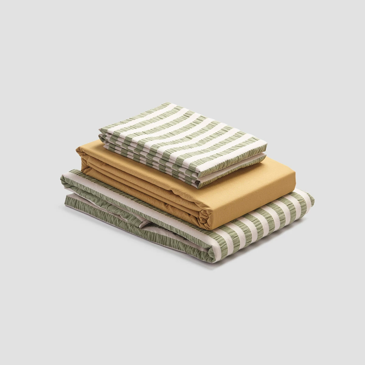 Pear Seersucker Stripe Cotton Bundle -Bed Linings Sales Shop PigletinBed WashedCottonDuvetCover PearSeersuckerStripe 3 greyBG