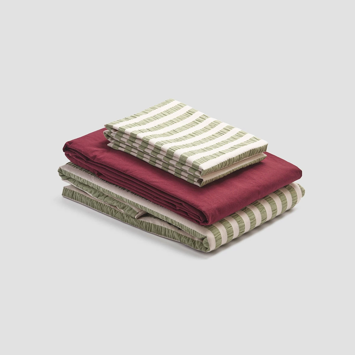 Pear Seersucker Stripe Cotton Bundle -Bed Linings Sales Shop PigletinBed CottonBasicBundle PearSeersuckerStripe Mix Match V4 Mulberry greyBG