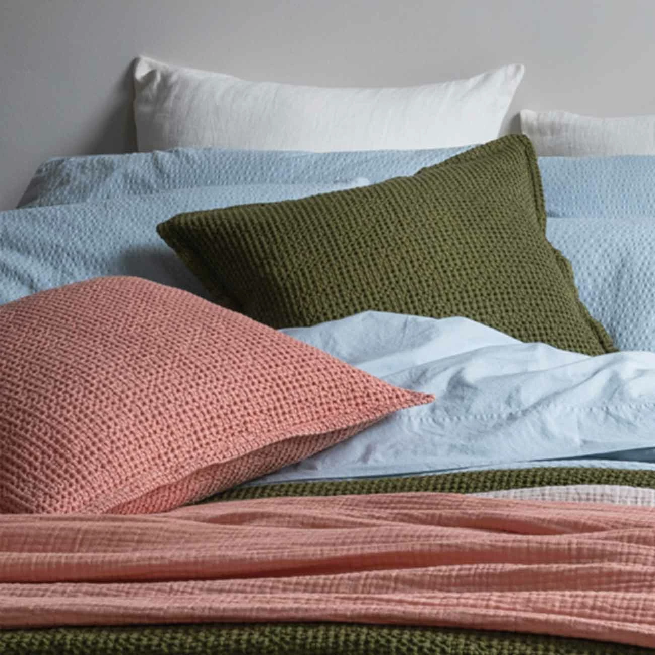 Featuring a wonderfully textured and rustic waffle-style weave, this 100% cotton cushion cover is made from cotton sustainably sourced in partnership with the Better Cotton Initiative. Soft, durable and great to add color to your bed or sofa. Mix and match colors with other designs in this collection or team with our crinkled linen and cotton cushion covers for a blend of textures. Pictured here in Pink Clay, a warm and soothing pink.