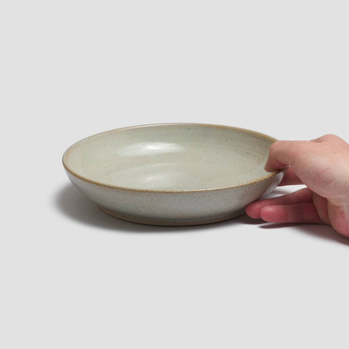 The Pottery West for Piglet Dinner Bowl has a beautiful, speckled finish and is perfect for entertaining or everyday dining. Each piece is hand-thrown in the Pottery West studio in Sheffield in the UK, using iron-rich flecked stoneware. The Powder glaze is a calming pale blue-green hue with a washed look and plenty of iron speckles showing through from the clay.
