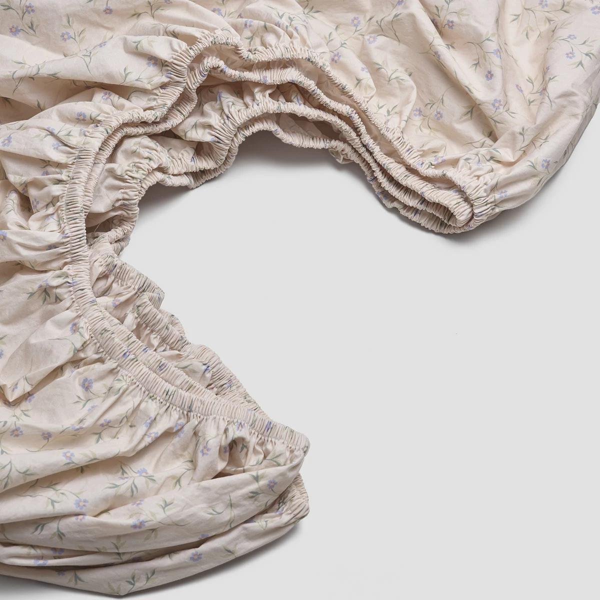 Spring Sprig Printed Cotton Fitted Sheet -Bed Linings Sales Shop PigletinBed WashedCottonFittedSheet SpringSprig 1 greyBG 11f4b99e 3616 45a5 bfd5 db09664039af