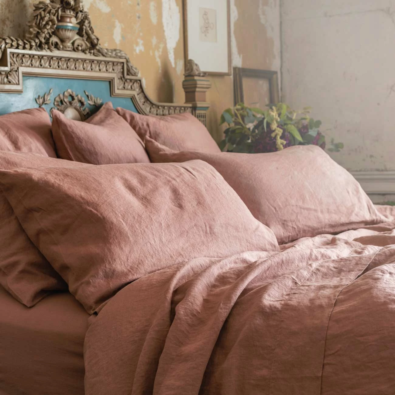Our linen flat sheets are ideal for layering under your duvet for warmth or for providing gentle, natural cover in the summer months. Made from 100% European flax and available in a wide range of signature shades, they are a great way to mix up your color scheme with our collection of duvet covers and pillowcases. Our Warm Clay flat sheet is a vintage-inspired, dusky pink that beautifully complements our existing linen bedding range, allowing you to form your own unique color combinations.
