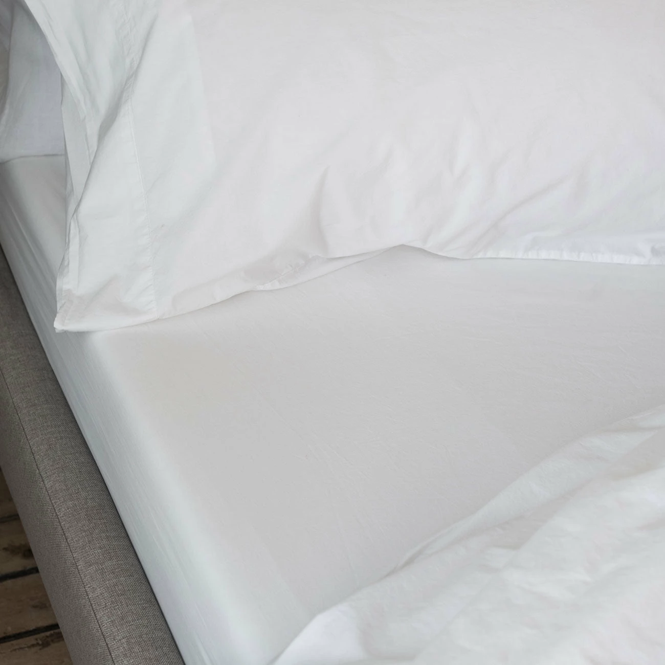 Washed for ultimate softness, our 100% cotton percale fitted sheets are perfect for lovers of no-fuss, high quality cotton bedding. The percale weave allows for a relaxed, matte finish while the loose nature of the weave makes the sheets highly breathable and airy. Our fitted sheets are elasticated all the way around, so that nothing comes untucked in the night and disturbs your sleep. Pictured here in our classic and timeless White, which looks beautifully crisp on its own or can be teamed with any of the other shades in our cotton percale bedding range.
